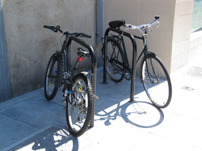 Further down the line in riverside Wapping they've done much better, installing a grand total of 2 Sheffield stands for all us cyclists to park our bikes, whilst south of the river Surrey Quays is blessed with a total of 5 uncovered stands not covered by CCTV and almost impossible to reach from the road without either pulling up in the gutter against railings or cycling across the pedestrian crossing...