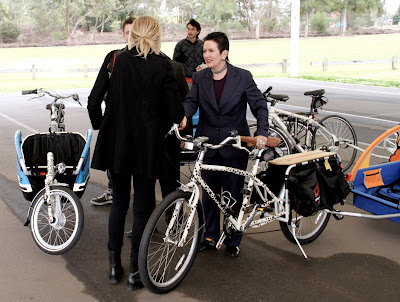 As a consequence I think we should be doing all we can to encourage families to get riding on cargo bikes. The benefits are of course just like the benefits of riding any bike, plus the added bonus of getting to spend more time with the kids whilst going from A to B; something we found that was important to parents here before. But it's a big step to give up a family car and move over to a bike, and some people are initially put off by the cost of cargo bikes (though of course they are not nearly as expensive as running a car or two). We should continue to maintain our campaigning focus on reducing road danger, providing good cycling infrastructure and all the rest of it, but the City of Sydney has already provided a great template for London to follow. Launched a few months ago by Sydney Lord Mayor Clover Moore, the Watershed cargo bike Library provides a stock of bike trailers, heavy load riders and cargo bikes for families to test and get used to before they consider buying one for themselves. The same idea has also been proposed by Kim Harding over at her blog - good ideas spread quickly! Projects like this can be great enablers in terms of getting people to make that first 'leap of faith' and of course borrowing a bike and finding you love it is a much less daunting prospect compared to giving up the family car outright and hoping for the best.